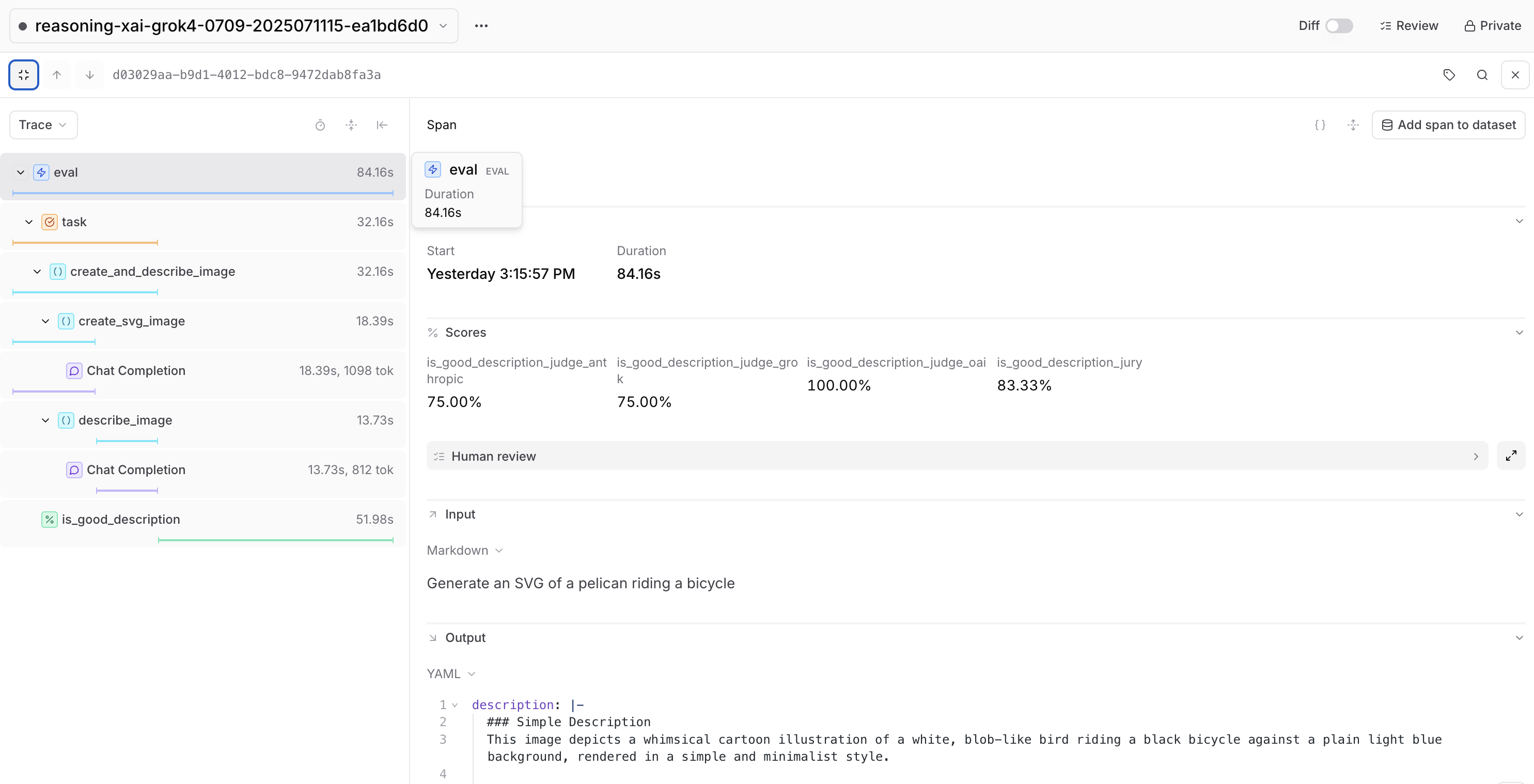When we run that against our outputs from create_and_describe_image(), we'll get something like this to add to our traces: